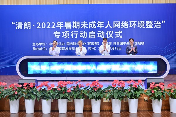 新华网北京7月19日电(记者董璐)7月18日,由中央网信办、国务院未成年人保护工作领导小组办公室、教育部、共青团中央、全国妇联联合举行的“清朗·2022年暑期未成年人网络环境整治”专项行动在京启动。