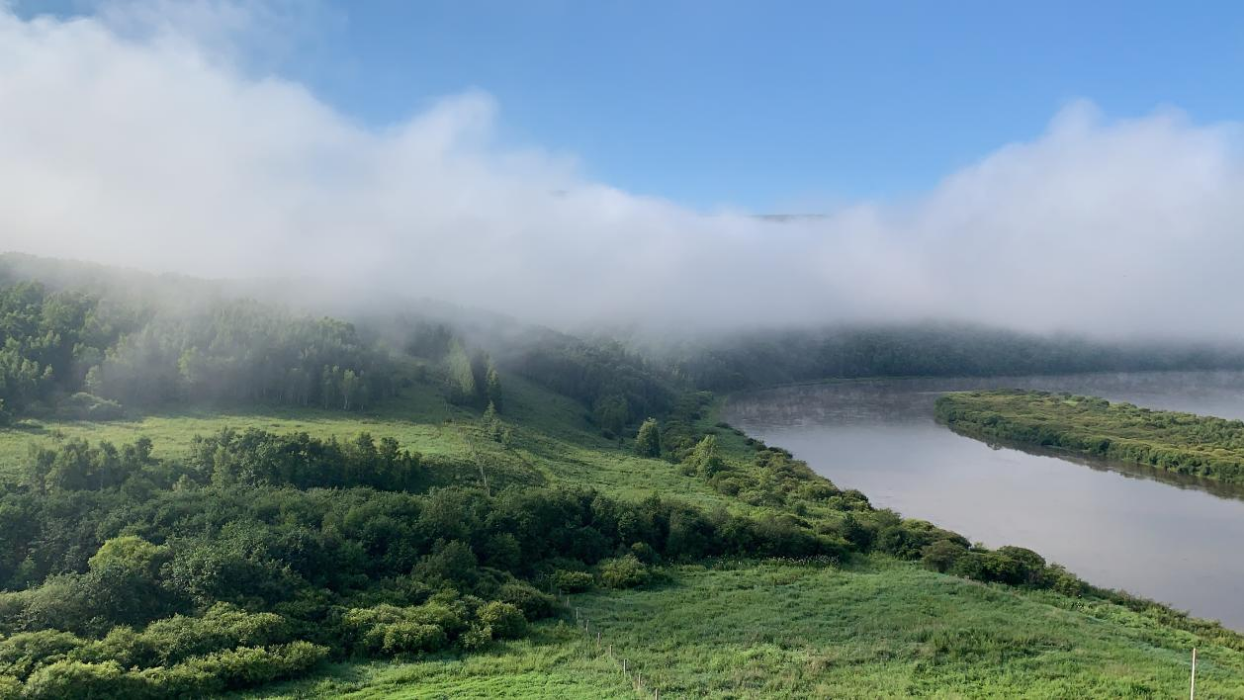 7月,边境小镇蒙兀室韦苏木迎来了一年中最热闹的时候。清晨漫步在室韦主题广场的步行栈道,云雾缭绕下的中俄界河额尔古纳河宛若一幅山水画,河对岸的俄罗斯村庄也伴着云雾的游走时隐时现。