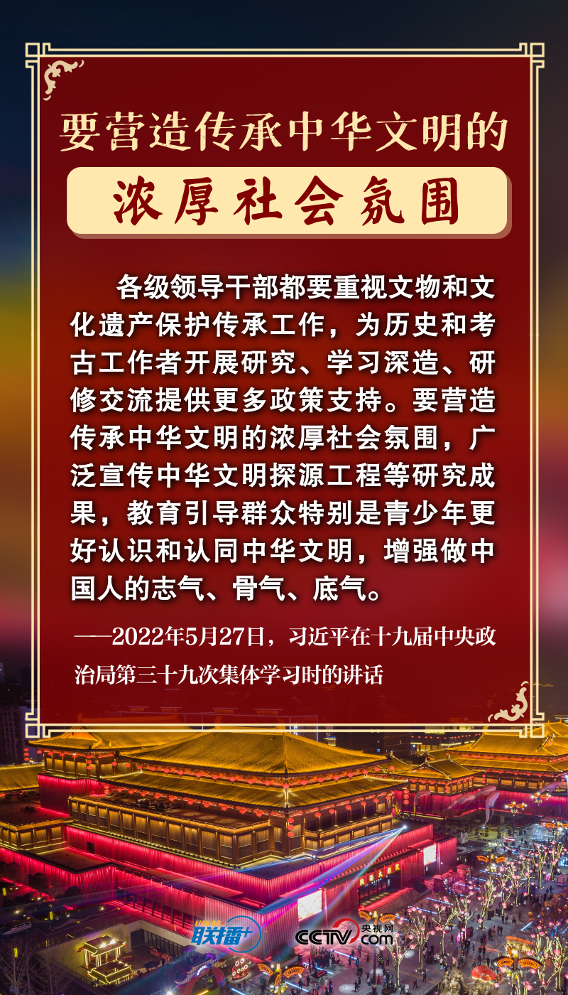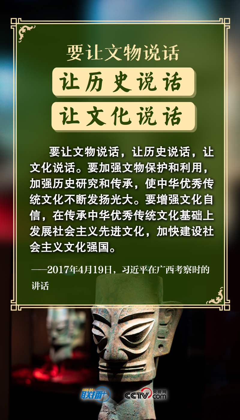“历史文化遗产承载着中华民族的基因和血脉,不仅属于我们这一代人,也属于子孙万代。”“考古遗迹和历史文物是历史的见证,必须保护好、利用好。”“把老祖宗留下的文化遗产精心守护好,让历史文脉更好地传承下去。”……