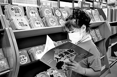 2021年8月29日,在江苏省连云港市连云区新华书店,一位孩子在选购教辅资料。王春摄/光明图片