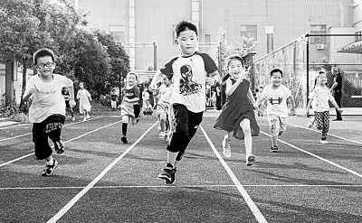 2021年9月1日,安徽省芜湖市繁昌区繁阳镇城关一小,一年级的小学生在操场跑道上奔跑。肖本祥摄/光明图片