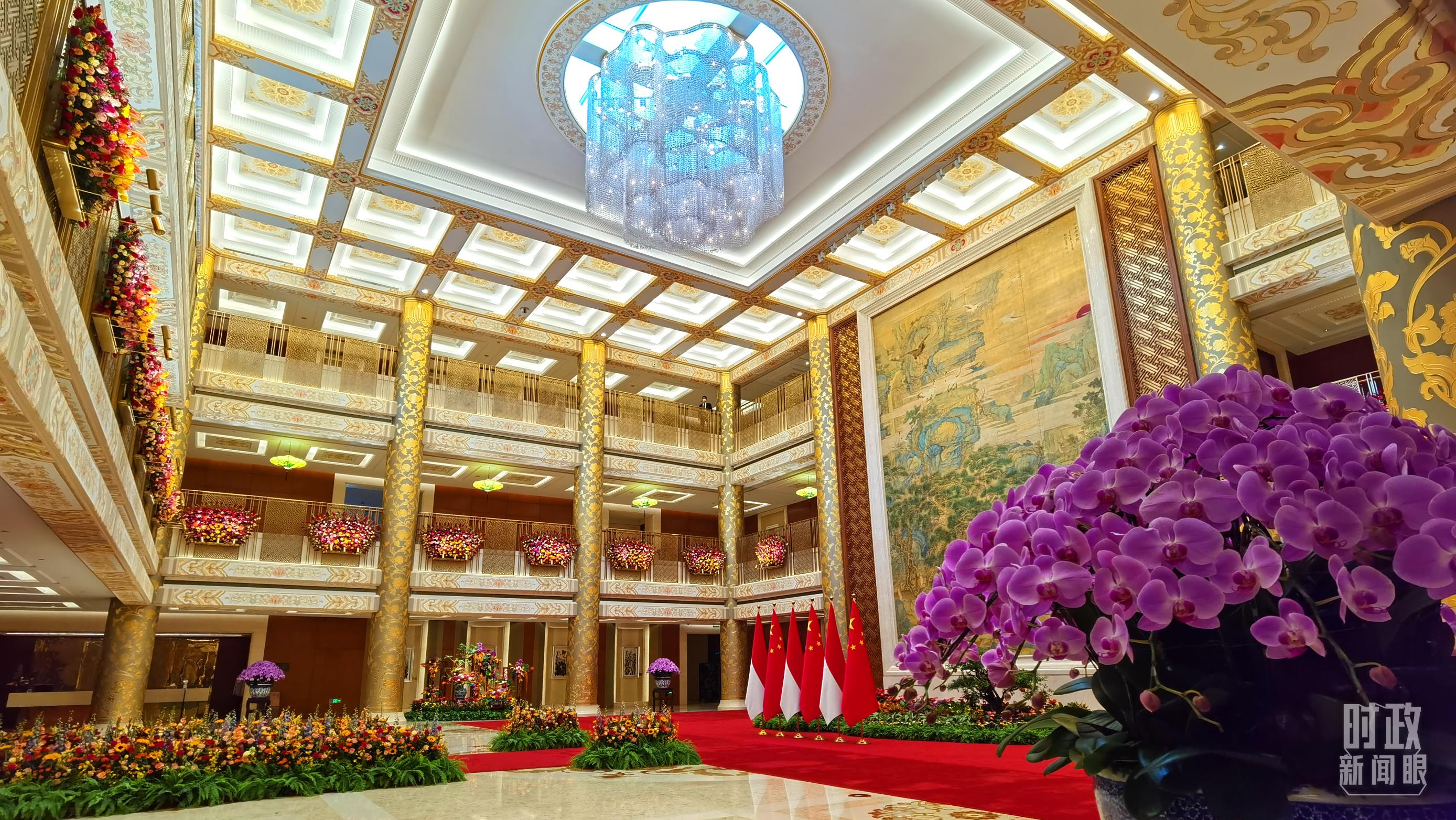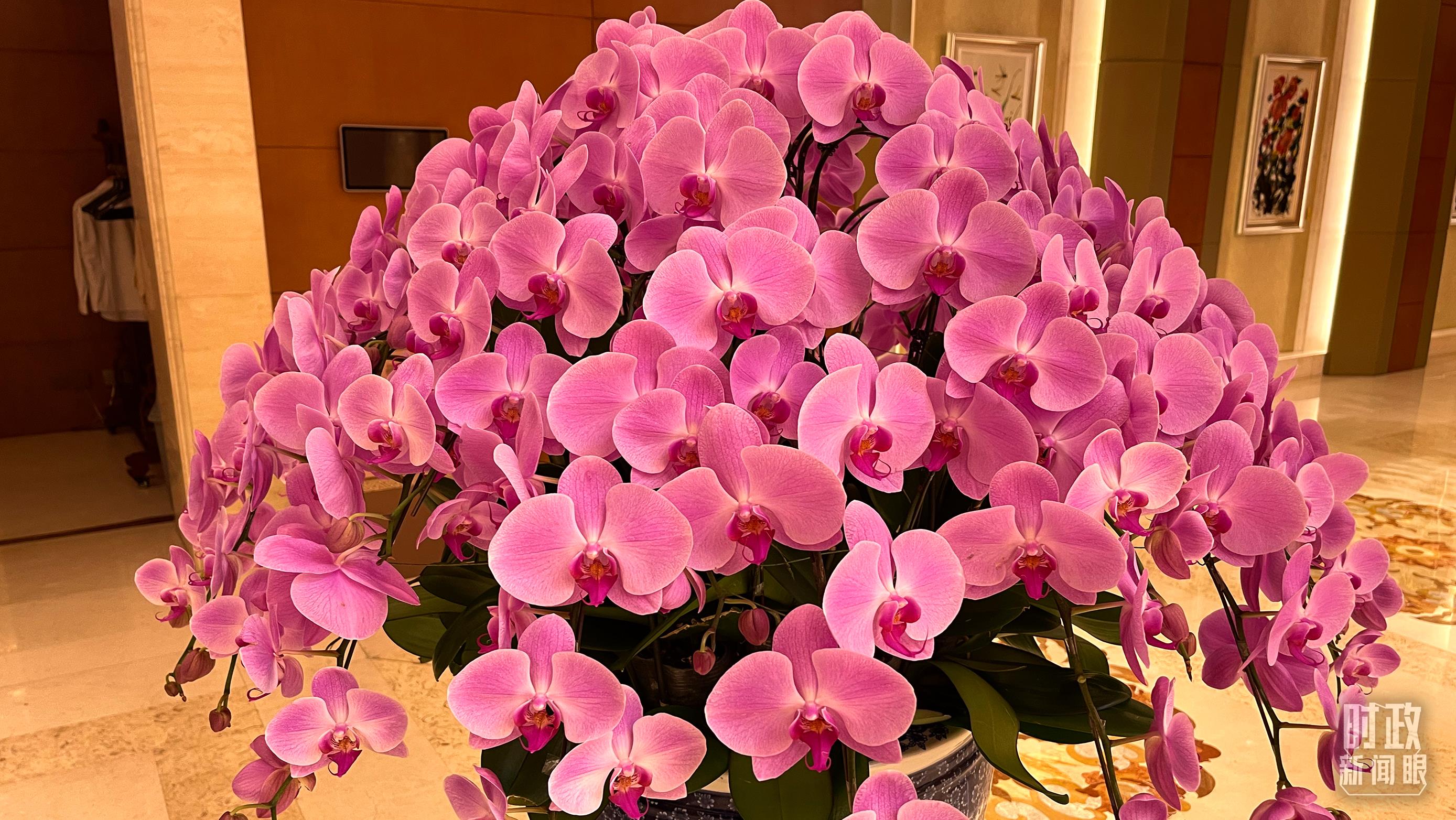 钓鱼台国宾馆芳华苑内摆放的蝴蝶兰,印尼是蝴蝶兰的重要产地之一。(总台央视记者鄂介甫拍摄)