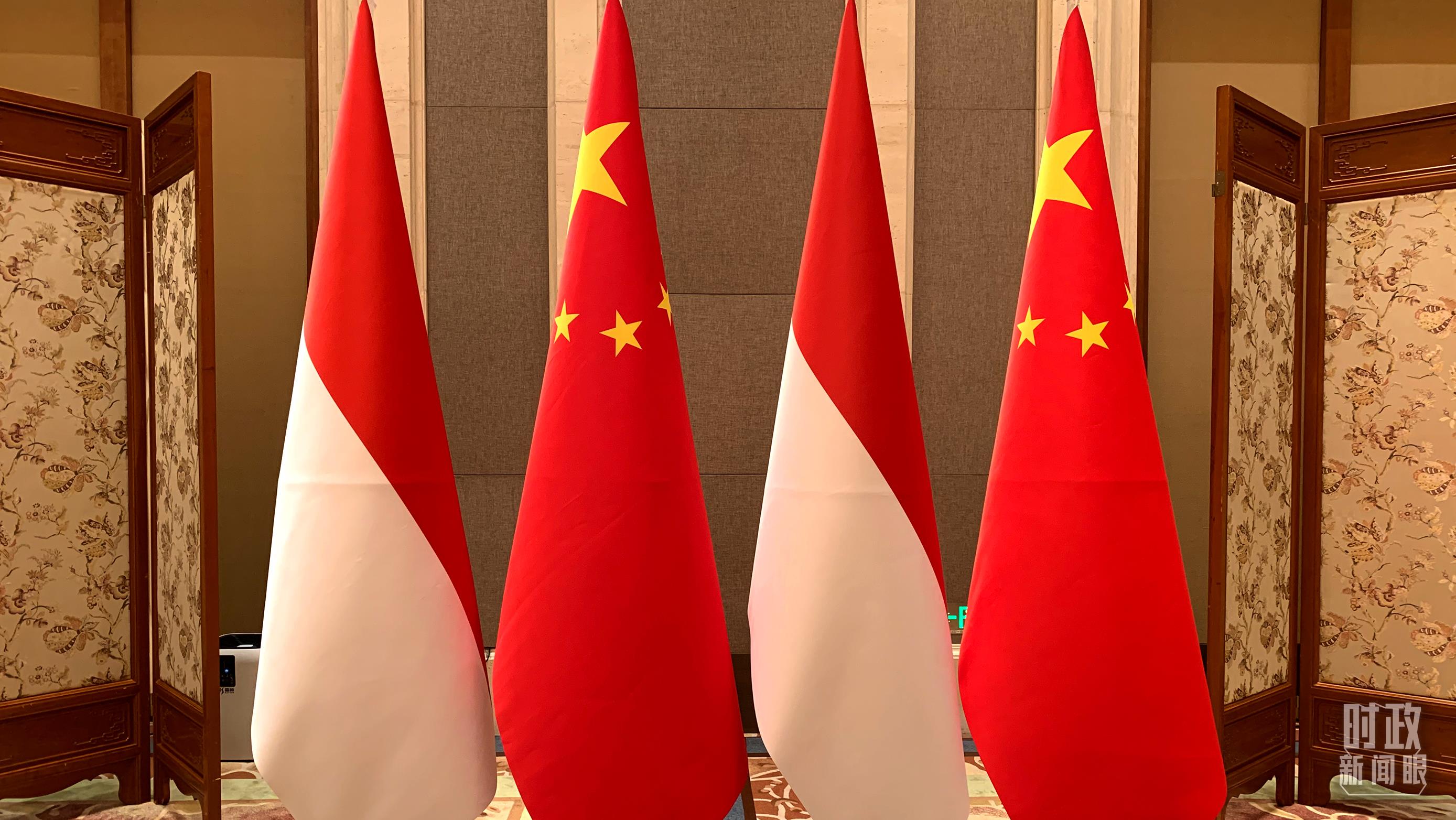 会谈现场的两国国旗。(总台央视记者范一鸣拍摄)