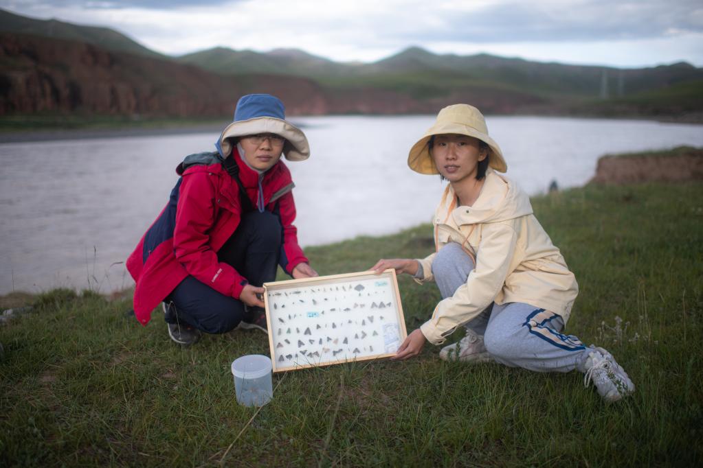 7月26日,江源科考队员张国月(左)与樊雅东展示采集到的昆虫标本。新华社记者 肖艺九 摄