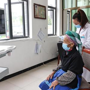 6月7日,在贵州省龙里县龙山镇团结村卫生室,村医陈莉(右)协助村民陈志珍通过远程诊断系统问诊。新华社记者 欧东衢 摄
