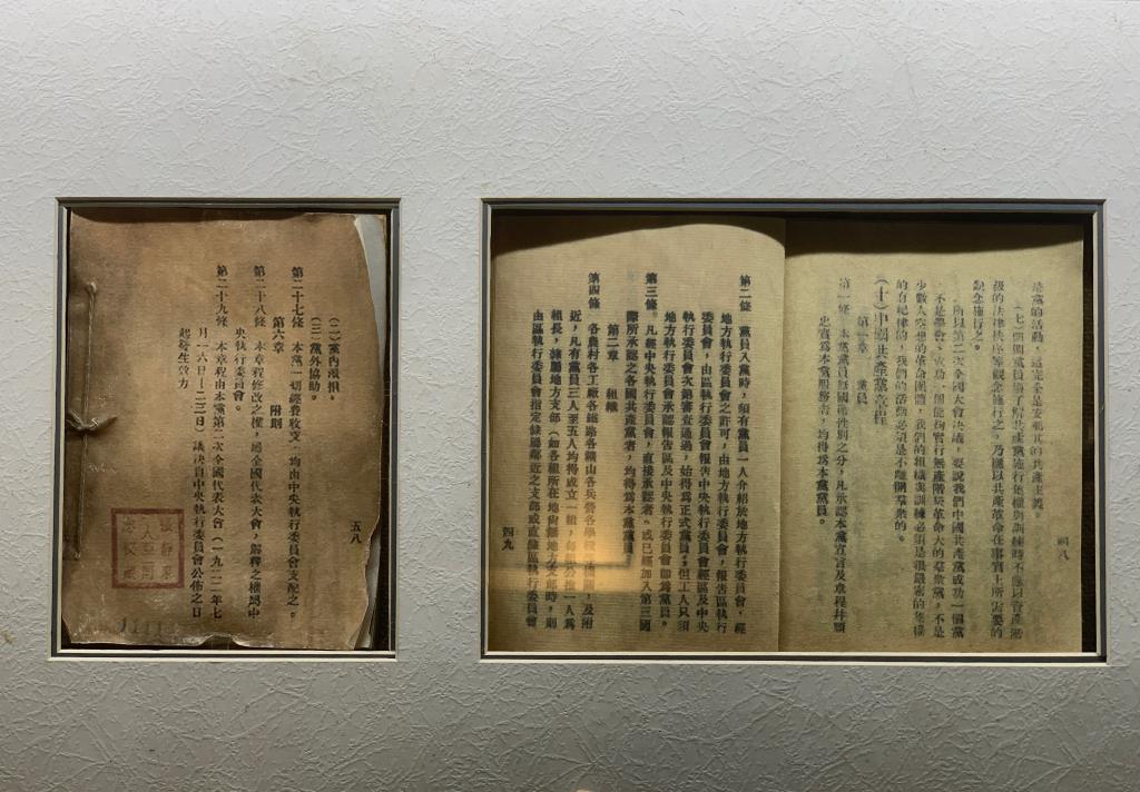在学堂内部的张人亚事迹陈列室,中国共产党第一部党章的复制件,摆放在最显要的位置。2022年7月,党章学堂还在新展厅开辟了一面“党章墙”,陈列着不同时期不同版本的党章。