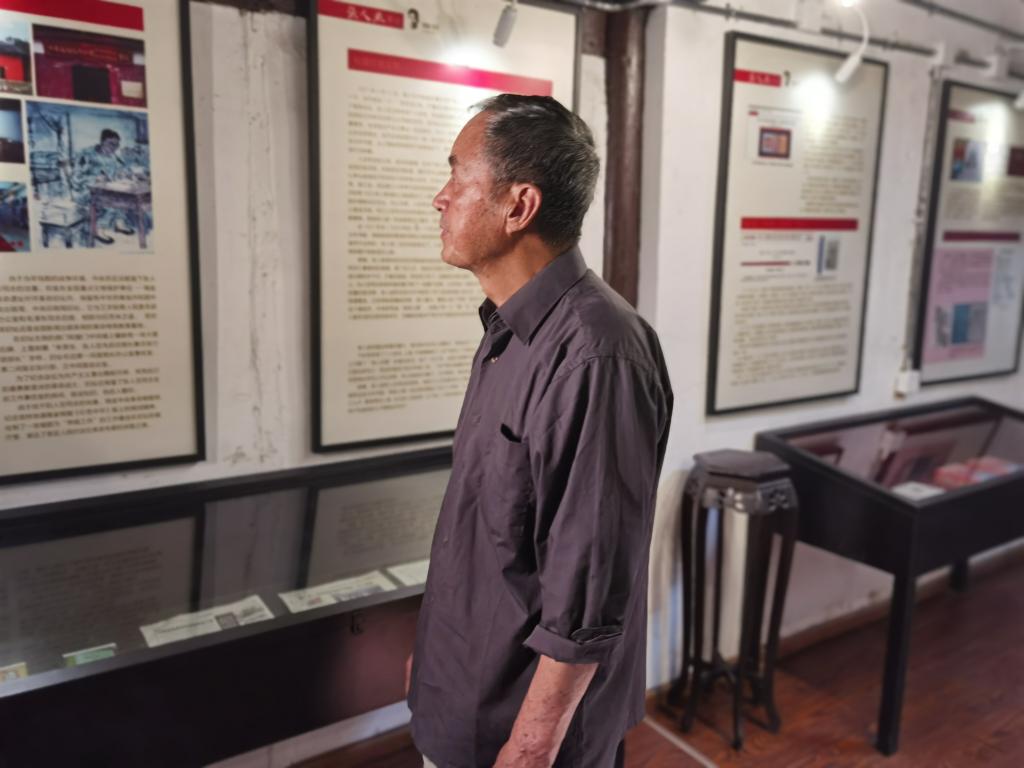 2022年6月8日,张人亚之侄张志成在张人亚故居的一块展板前伫立沉思。新华每日电讯记者顾小立 摄