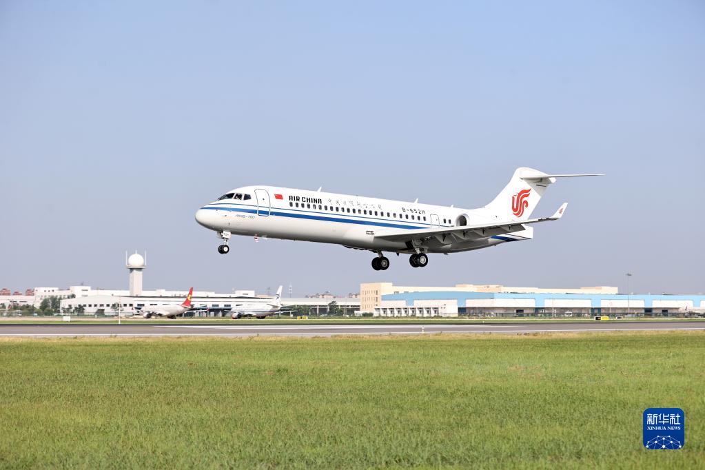 7月29日,以租赁形式正式交付的ARJ21支线飞机降落在天津滨海国际机场。新华社记者 赵子硕 摄