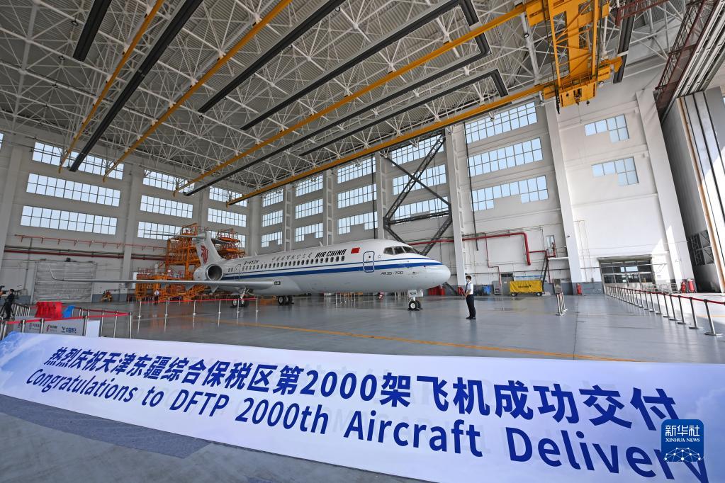 “这是2009年以来东疆交付的第2000架,标志着中国飞机租赁服务航空运输业和飞机制造业达到新高度。”天津东疆综合保税区管委会主任杨柳说。