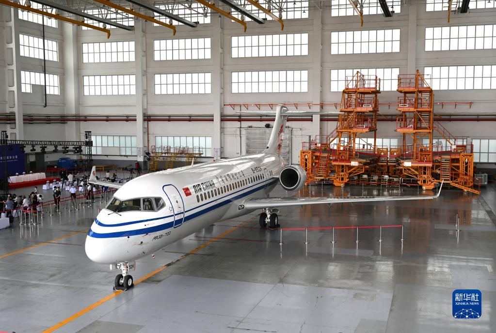29日上午,一架国产ARJ21飞机在天津由农银金融租赁有限公司交付给中国国际航空股份有限公司。