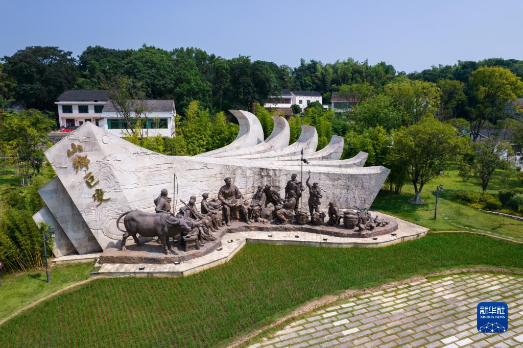 这是8月1日拍摄的湖南省益阳市清溪村清溪广场(无人机照片)。新华社记者 陈思汗 摄