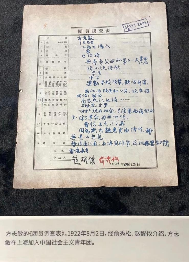 8月2日,展览中展出的方志敏团员调查表。受访者供图