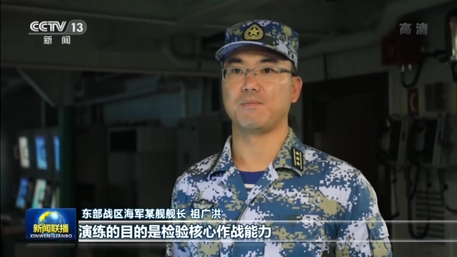 东部战区海军某舰舰长祖广洪:演练的目的是检验核心作战能力,保持全时待战、随时能战的高度戒备状态,我们有决心有能力对一切破坏祖国统一的来犯之敌迎头痛击、绝不留情。