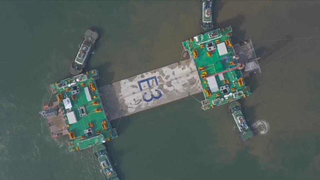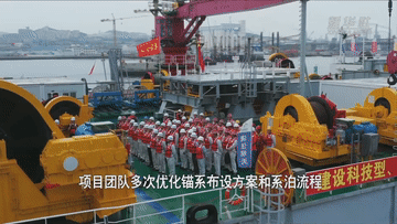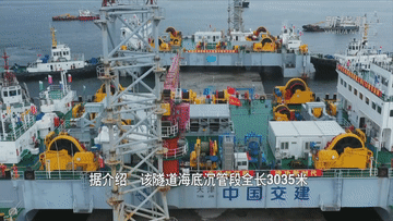 据介绍,该隧道海底沉管段全长3035米,由18节沉管组成。本次安装的E18管节施工水域狭窄、系泊工艺复杂,是全线安装难度最高的管节。项目团队多次优化锚系布设方案和系泊流程,为管节顺利安装扫清了障碍。