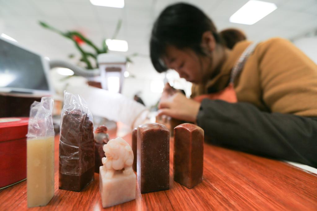 中国印章篆刻历史悠久,承载着深厚文化内涵。如今,借助互联网销售平台,篆刻这门技艺焕发了新活力。目前,孔府印阁的篆刻印章产品走俏市场,每年1000多万枚印章从这里发往各地,去年销售额近2亿元,还成功入选“山东手造·优选100”名单。