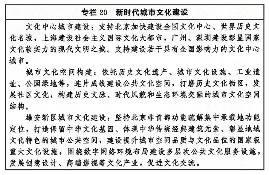 综合城市功能定位和经济社会发展,建设传统文化和现代文化交相辉映、城市气质与人文精神相得益彰的现代城市文化。强化各类规划中文化建设的刚性约束,保护历史文化遗产,融合时代文明,构建城市文化精神,发展城市主题文化,营造特色文化景观。以文化建设带动城市建设,提升城市文化品位、整体形象和发展品质。加快建设一批有全国影响力的文化中心城市、特色文化强市。支持相关省(自治区、直辖市)建设一批具有代表性的区域文化中心城市和特色文化城市。结合新型城镇化建设,鼓励因地制宜发展一批承载历史记忆、体现地域特征、富有民族特色的美丽城镇。