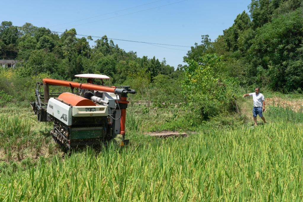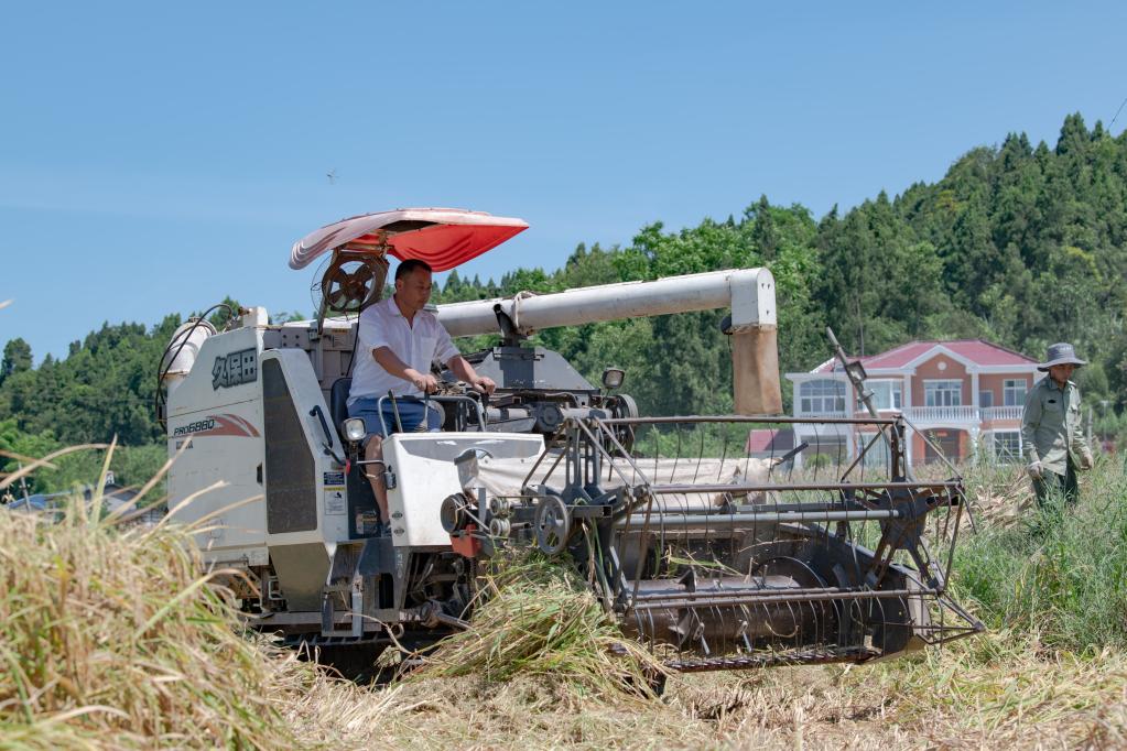 新华社成都8月17日电(记者周相吉 唐文豪 张海磊)八月中旬的正午,骄阳似火,热浪从黄绿相间的稻田蒸腾而起。四川省资阳市安岳县清泉村的一片稻田深处,收割机穿梭在层层叠叠的稻浪中,轰鸣声盖过了嘶哑的蝉鸣。刘凡强站在田埂边向正在操作收割机的儿子刘衍进挥了挥手,喊道:“还有好多没收完?先去把中午饭吃咯。”