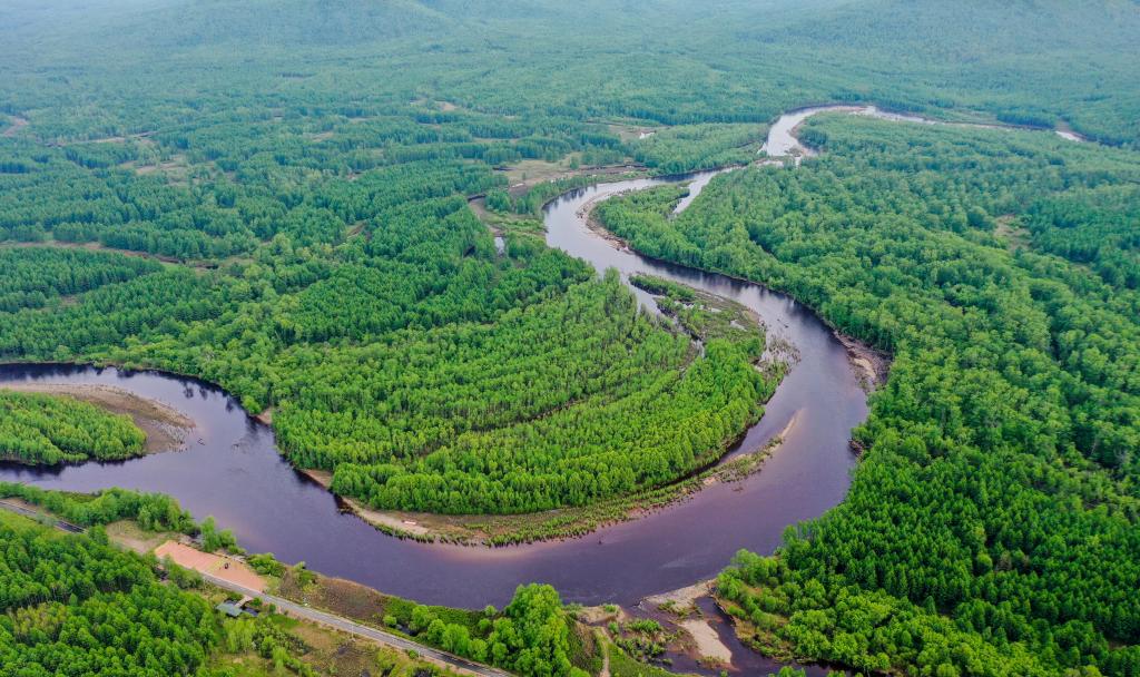 这是2021年6月8日拍摄的内蒙古呼伦贝尔根河源国家湿地公园(无人机照片) 新华社记者 连振 摄