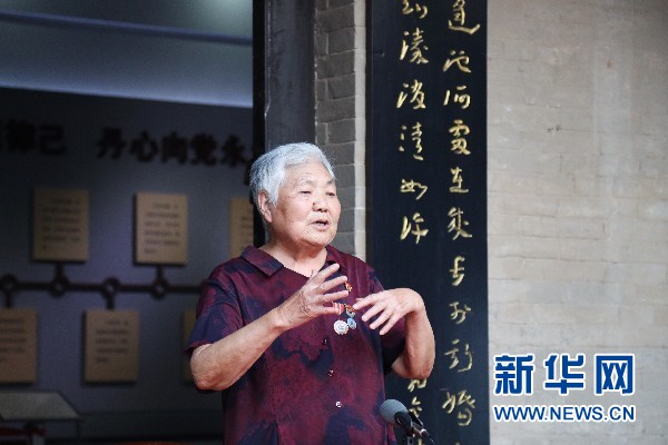 尉氏县大营镇尚王村人王小妹,1950年后任尉氏县大营区团委委员,祥符张乡民兵队长,焦裕禄在大营区任区长期间她积极参加土地改革,农业生产,是焦裕禄培养树立的“巾帼劳模”。图为王小妹讲述焦裕禄的故事。