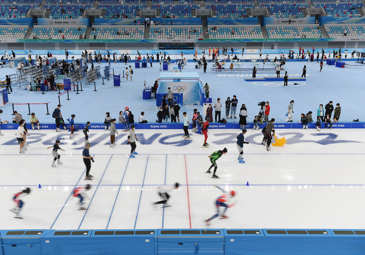 7月9日,北京冬奥会标志性场馆、唯一新建冰上运动场馆国家速滑馆“冰丝带”正式对外开放,公众可近距离接触北京冬奥会速度滑冰比赛冰面。当天上午就有近千名游客上冰体验。