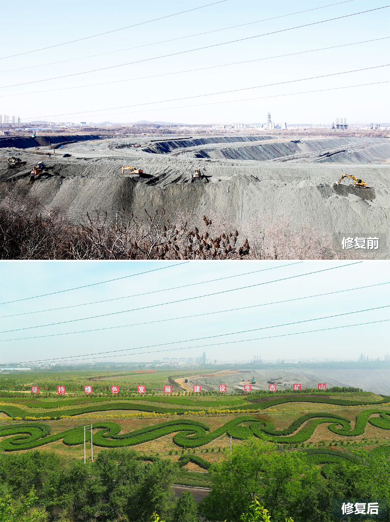 西露天矿于2019年6月正式退煤闭坑,由采转治。如今,这个巨大矿坑,生态修复成效显著。昔日寸草不生、风沙飞扬的矿山正在逐步变成绿树成荫、鸟语花香的美丽花园。