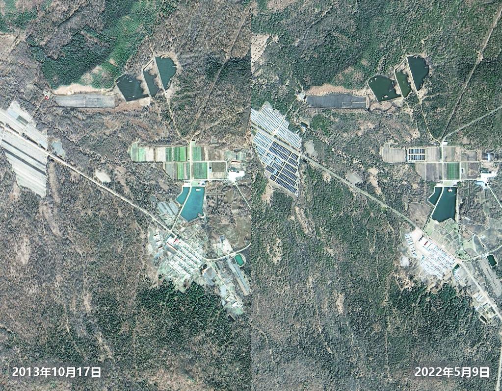 拼版图片:上图为抚顺西露天矿部分区域生态恢复前的场景(2019年3月6日摄,抚矿集团供图);下图为抚顺西露天矿部分区域生态恢复后的场景( 新华社记者杨青2022年6月2日摄,无人机照片)。