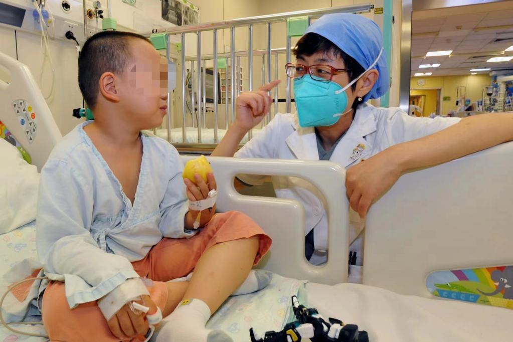 国家儿童医学中心、北京儿童医院急诊内科主任王荃与患儿互动。(北京儿童医院供图)