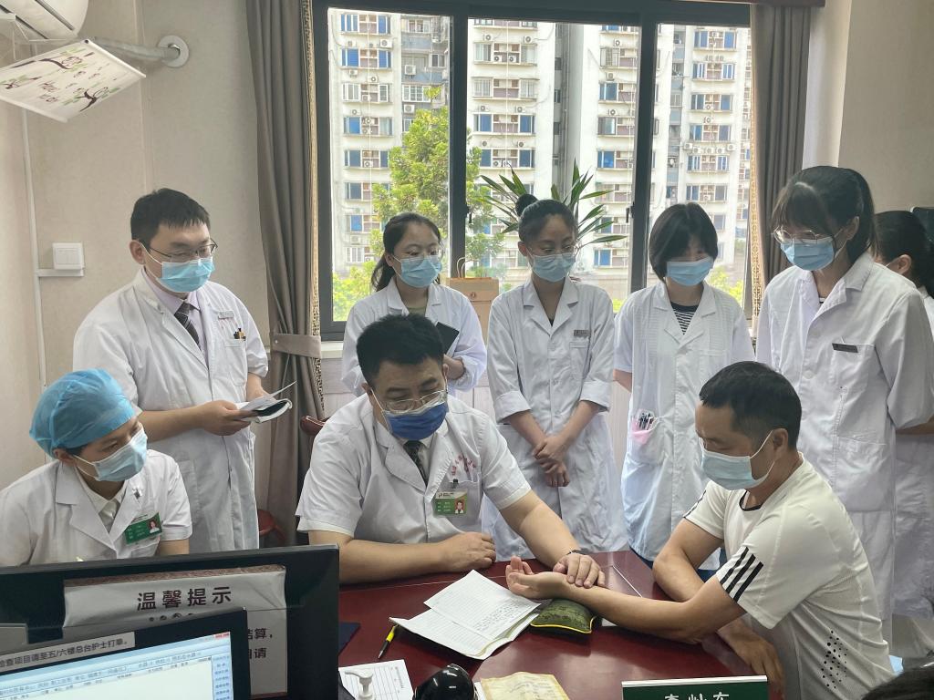 全国名中医、福建中医药大学校长李灿东正在为患者把脉。新华社记者邓倩倩 摄