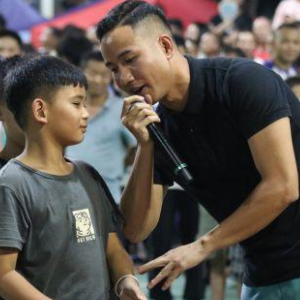 ⬆现场主持人与球迷互动⬆