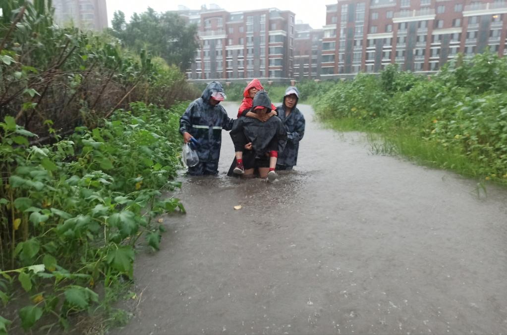 新发屯街道社区工作人员转移救助居民。(受访者供图)