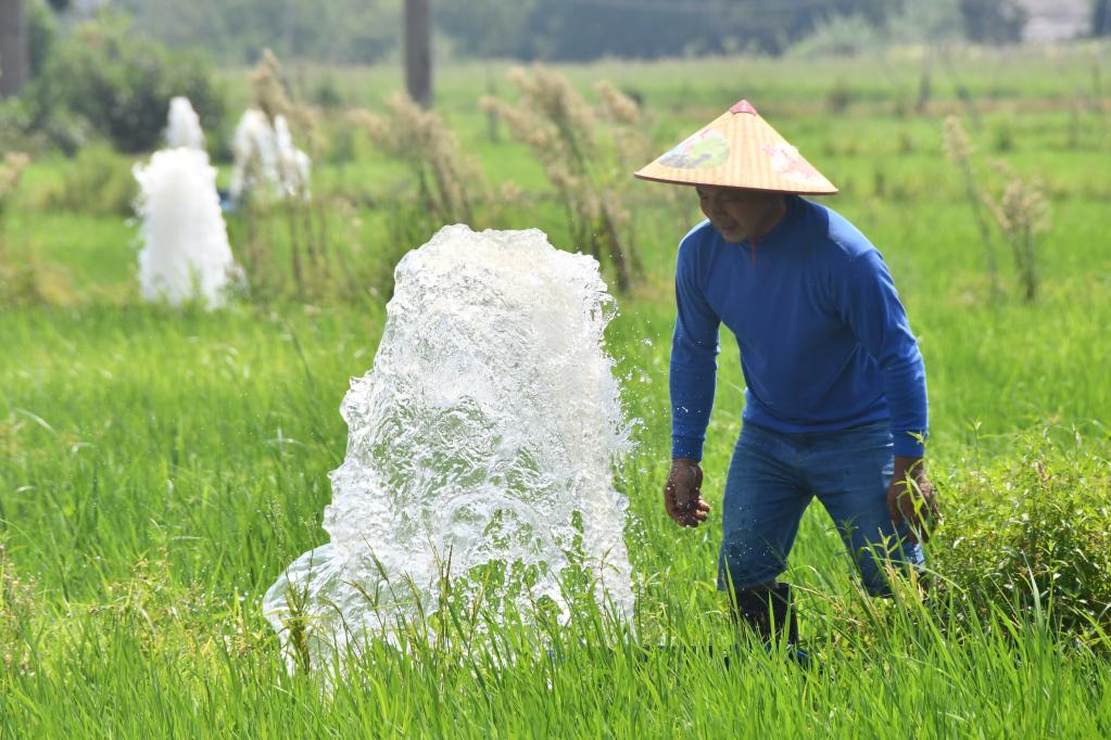 得知农户们的需求,昌邑乡政府安排20台电泵,开足马力将水抽入排灌站,再输送到稻田边的水渠里。“20台电泵24小时不间断运转,一小时就能抽5000立方米的水,基本能满足全乡1.2万亩农田灌溉需求。”昌邑乡水务站站长李经港说。
