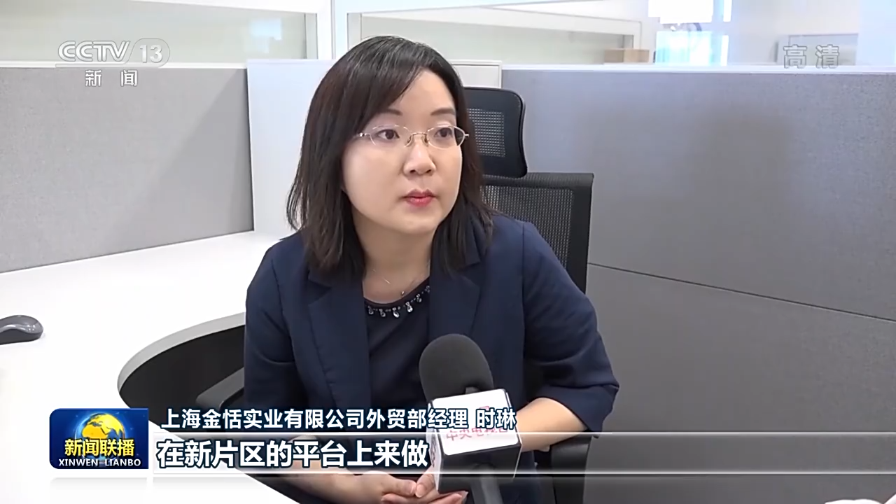上海金恬实业有限公司外贸部经理 时琳:在新片区的平台上来做,大大加快了我们操作的便利度。之前我们大部分的离岸业务都是放在新加坡去操作的。从今年开始我们已经放了80%左右的离岸业务到上海这个平台。