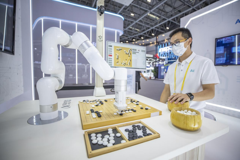 8月21日,2022智博会工作人员演示与弈棋机器人对弈。新华社记者 黄伟 摄
