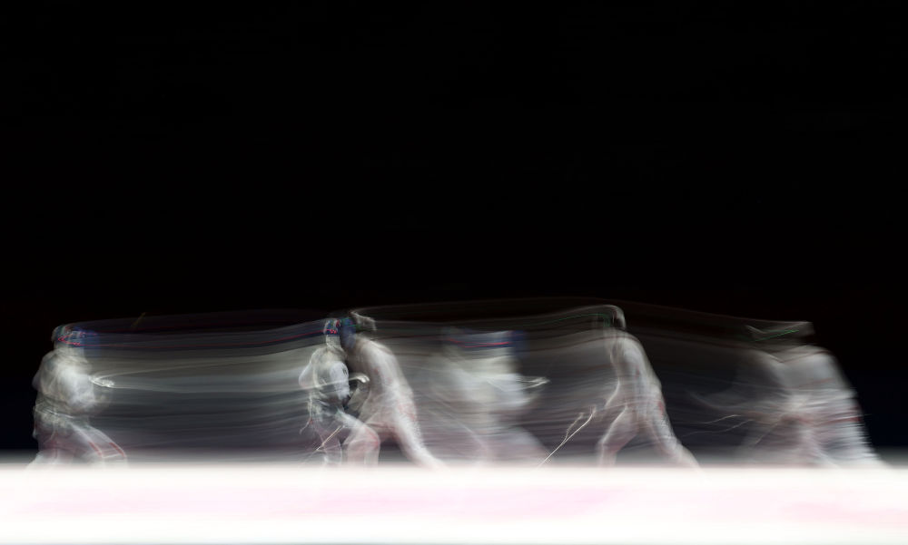 赛前的充分准备在比赛时发挥了重要作用,内场拥挤的空间要同时容纳7位内场摄影记者和至少4位直播摄像,每次移动都得同时照顾到其他摄影记者、摄像、裁判以及运动员等,充足的功课让我在拍摄重点选手时得心应手。我特意选择运动员起跳的后方拍摄,这样能够捕捉到跳起后头部后仰,面部的生动细节,再加之内场的有利位置能够从低角度仰拍,抬起的右脚正好遮住眼睛,使得画面更具冲击力。