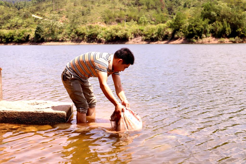 江西赣州市信丰县西牛镇当地干部在给姜坑水库开闸放水。(受访者供图)