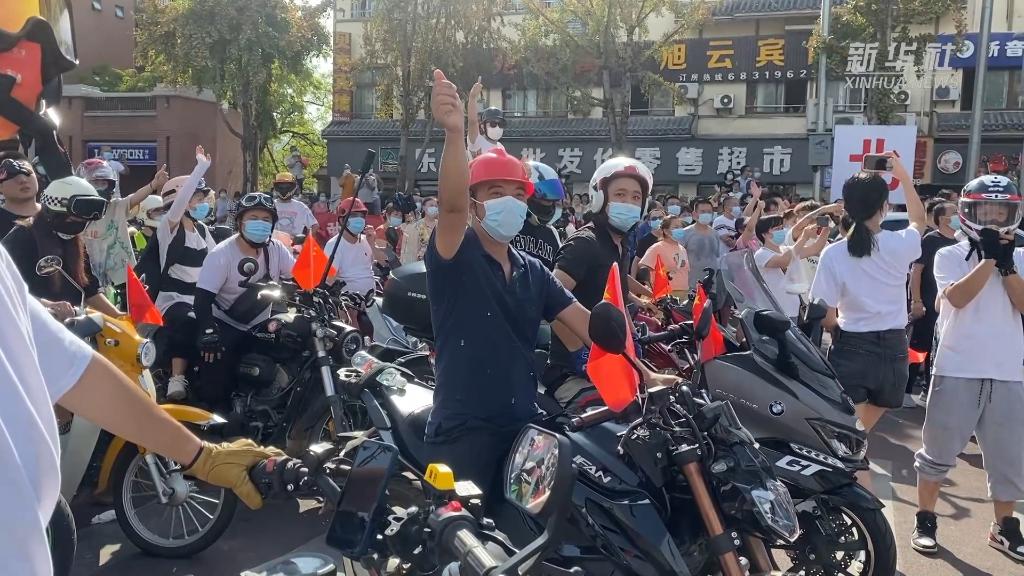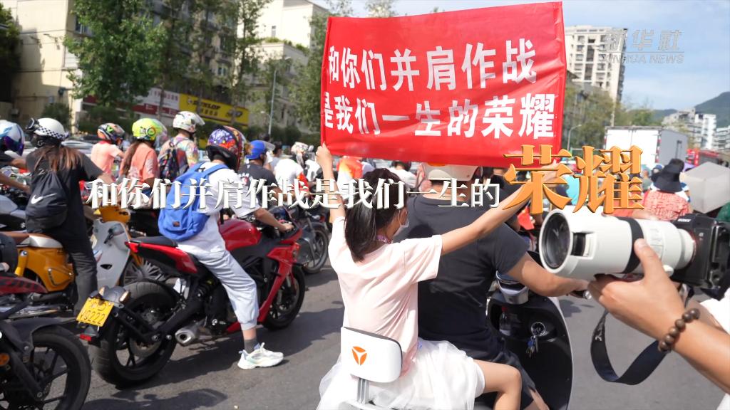 与消防员并肩作战的志愿摩托车队也前来送行:“和你们并肩作战是我们一生的荣耀。”