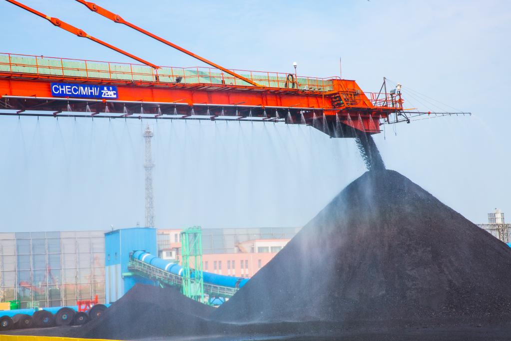 这是黄骅港煤炭港区的堆料机臂架洒水系统,可为煤堆补水抑尘。(受访者供图)