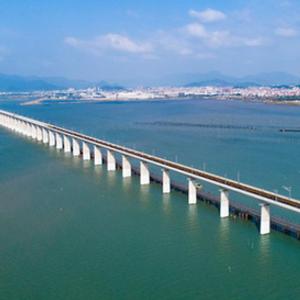 中国铁路南昌局集团有限公司相关负责人介绍,由于海上水文环境复杂,风险系数高,新建福厦铁路全线铺轨有三处难度极大的施工地点,分别为湄洲湾、泉州湾、安海湾三座跨海大桥。为此,施工单位采用国内先进的本邻两线铺轨作业设备,左右两线长钢轨同时铺设,比传统铺轨机组提高60%的作业效率,日进度可铺设长轨约6公里,为新建福厦铁路按期开通打下坚实基础。
