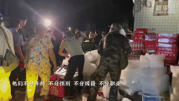 18岁的王劲博作为摩托车骑手,一直在现场运送物资。他连续两天上山下山,每天只喝点稀饭和水。“大家虽然可能都不认识彼此,但是心特别齐。我经常车还没骑到集散点,喊上一句需要什么,马上就有人给我准备好,让我带上就可以走。”
