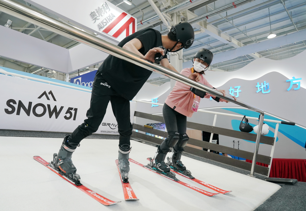 吸引了多位现场观众“解锁”滑雪初体验