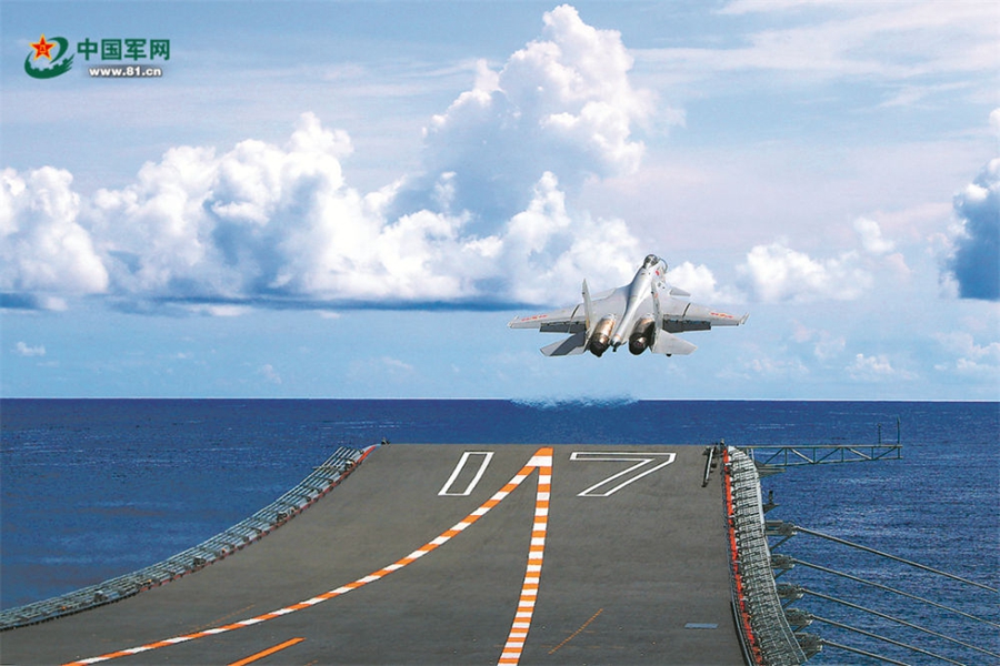 “起飞!”指令下达,舰载战斗机如利剑出鞘,刺向海天;各属舰按照指挥所下达的作战方案,同时展开火力突击。作战指挥屏上,分析数据不断传来,各战位键盘敲击声、收发指令声此起彼伏。