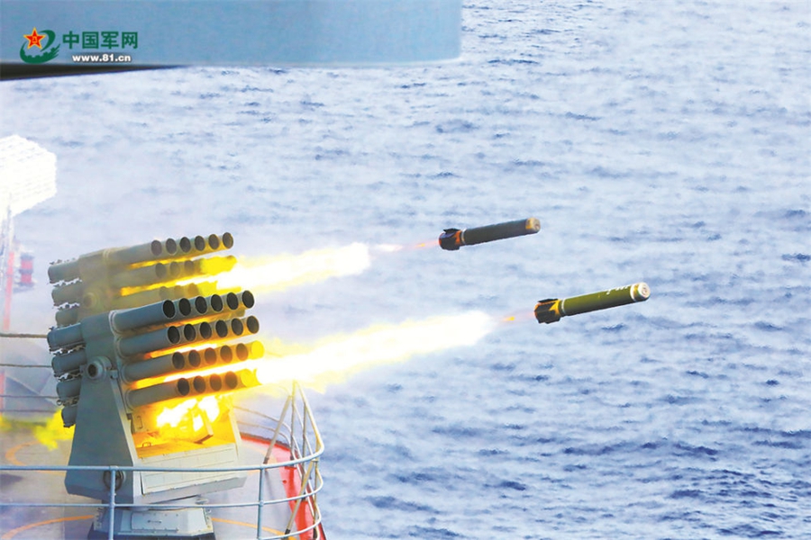 “发现‘敌’鱼雷来袭!”研判态势后,指挥员果断下达反潜武器发射指令,各战位密切协同,成功拦截来袭鱼雷。