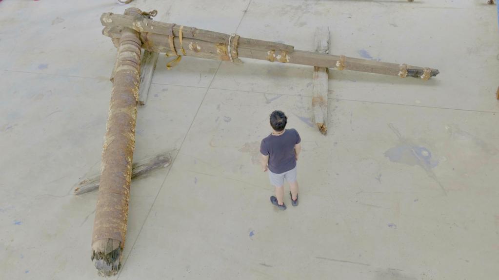 长江口二号古船的舵杆。(上海市文保中心供图)