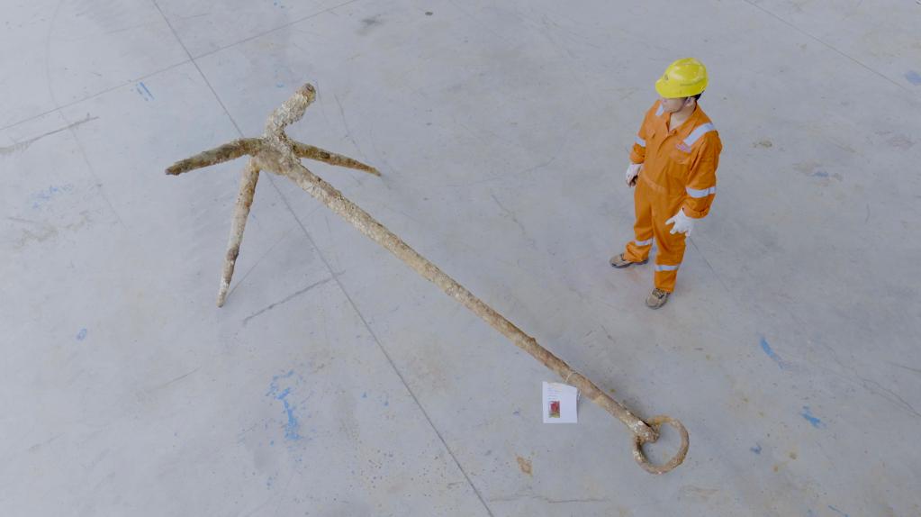长江口二号古船的四爪铁锚。(上海市文保中心供图)