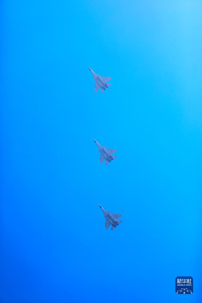 海军航空大学某基地组织高强度多课目飞行训练,歼-15战机进行编队飞行(8月10日摄)。新华社发(姜涛 摄)