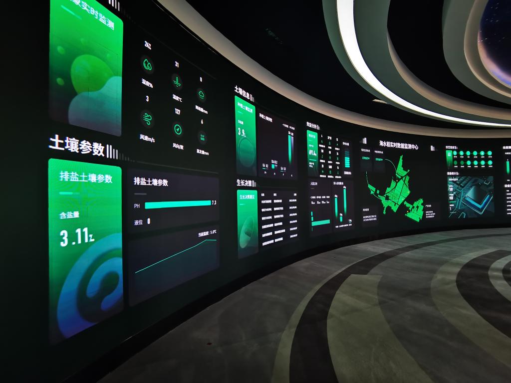刚下车,就闻到一股稻香。来到山东省潍坊市寒亭区耐盐碱水稻种植基地,青绿的水稻随风摆动,稻穗已经探出了“头”。土壤含盐量、效益分析、生长决策建议……在实时数据监测中心的显示屏上,数万亩耐盐碱水稻长势一目了然。