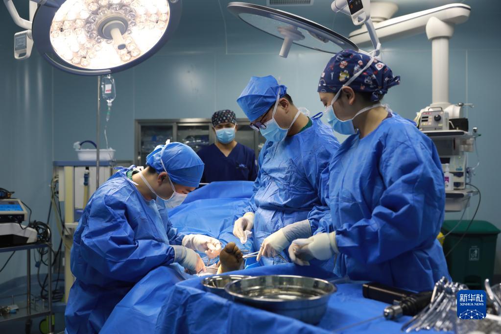 9月6日,西部战区总医院医务人员为灾区伤员进行急诊手术。新华社发(赵芝洪 摄)