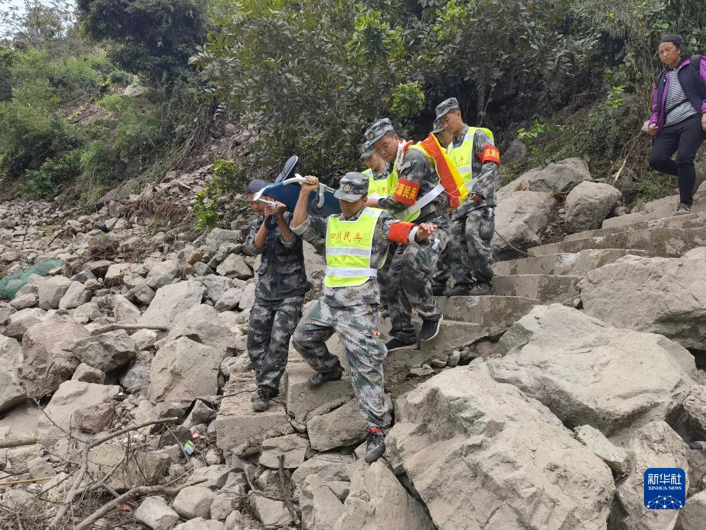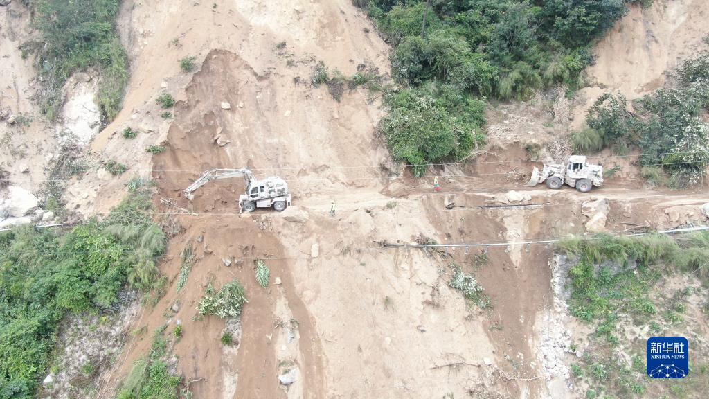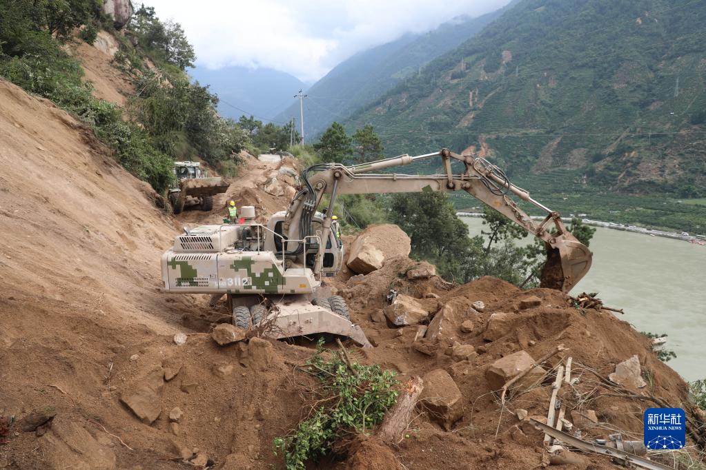 9月8日,西部战区陆军第77集团军某工兵旅官兵在雅安市石棉县进行道路抢通作业。新华社发(黄钦 摄)
