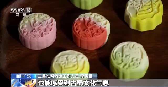 四川三星堆博物馆产业发展股工作人员 李雪琳:兼具未来科技感的设计和古蜀文化内涵,让今年的月饼更受年轻人的喜欢。大家在品尝月饼的同时能感受到古蜀文化气息。