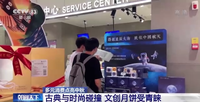 传统文化大放异彩的同时,时尚元素也在融入月饼市场。中秋前夕,神舟十四号航天员乘组进行出舱活动备受社会关注,在北京,这款融合航天创意和中秋团圆的月饼礼盒,就吸引了不少市民前来选购。